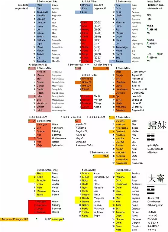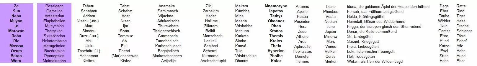 II KAMIDAN OLWIGAN MARS ALDEBARAN. RI SUBSOLARIUS. Chrysantheme, grau. Sturm- und Regengöttin, Herrin des Gebirges, Schirmerin der Ehe und des Rechts. HERA und RHEA. Onhkama Proto, Onhkamo Atkainun Protomedeia, Marwi Mubaga Galene, Femacka Shoatkainun Laomedeia. Ulmus und Tilia. Bos. IC/X OPKA MIDAN. STORM SKY BULL. |